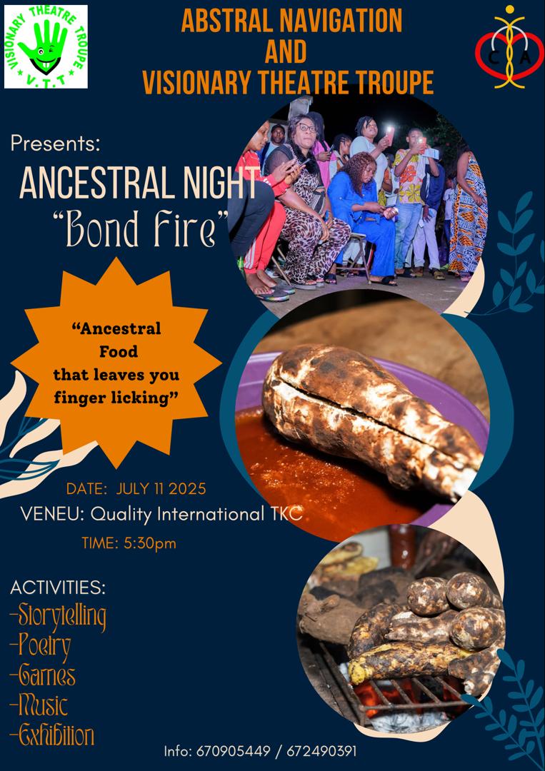 The heritage of our Ancestors is the reality of the lives that we are living now. We are today because they were yesterday. When we take a time out to honour their existence, it gives them the chance to reason with us, helping us to better understand ourselves and the Values that they have handed down to us. We Honore them with the way we talk, the food we eat, the songs we sing, the cloths we wear and the intentions we raise. At the ancestral night we come together as a community, sharing our differences which is a symbol of our strength. We try to follow on some of the right and rituals of our Ancestors and use arts to captures their reality in life and the influence they have as pilers of our existence.